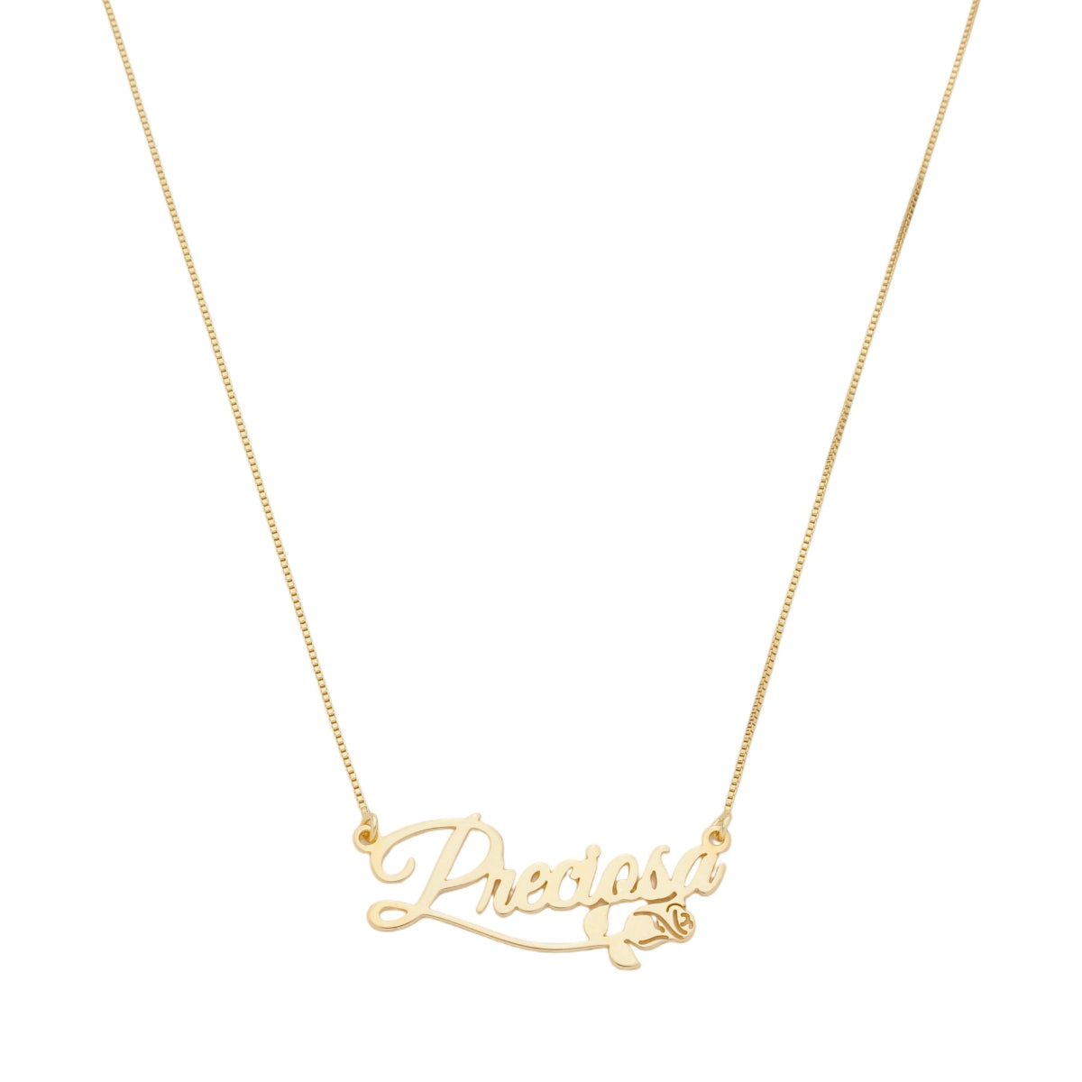 Lindo colar com inscrição "Preciosa" e rosa recortado a laser com acabamento perfeito.